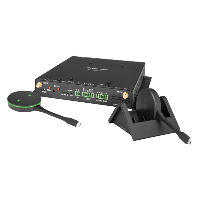 The AM3-212-I KIT enables secure wireless collaboration in the modern digital workspace. The system contains an AirMedia Series 3 Receiver (AM-3200-WF-I), two AirMedia Connect Adaptors (AM‑TX3‑100-I), and a tabletop cradle for up to four AM-TX3-100 adaptors (AM‑TX3‑100-CRADLE). The AM3-212-I KIT is easy to deploy and manage, and it can be installed in huddle rooms, lounges, lobbies, or almost any space to establish a productive meeting environment.