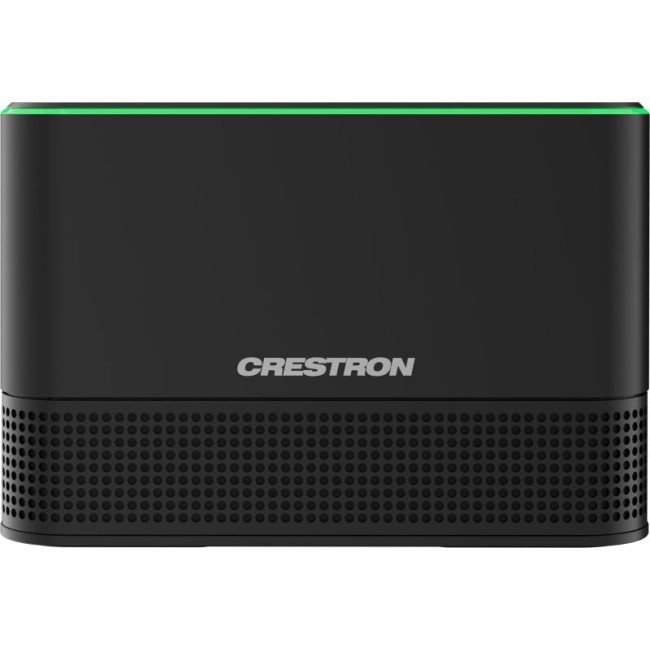 The Crestron Flex UC-AUDIO-POD-B is a wireless tabletop conferencing device with a speaker and four microphones that is ideal for small to large rooms. The pod wirelessly connects and transfers audio to and from a paired Crestron Flex UC-AUDIO-HUB. The connected hub receives and sends audio to a UC Engine through a USB-C® connection. Up to four pods can connect with the hub, providing omnidirectional sound in large or medium conference rooms and multi-purpose meeting spaces. The pod can be placed anywhere within a room or mounted on a table, depending upon the size and shape of the meeting space.