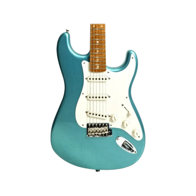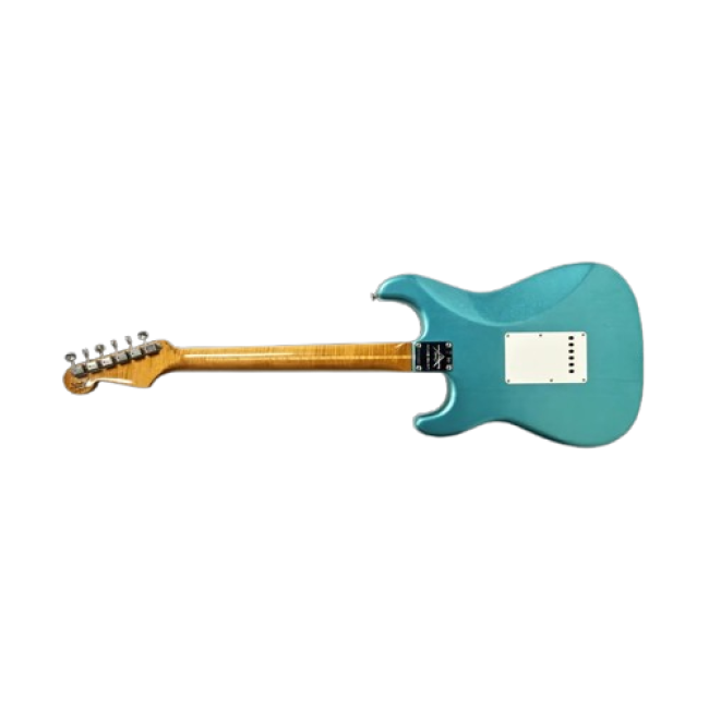 Experience premium Custom Shop craftsmanship with this limited-edition Fender Stratocaster, designed for players who demand vintage feel, modern playability, and standout tone. Finished in stunning Faded Teal Green Metallic, this model features a lightweight Roasted Pine body for enhanced resonance and dynamic response, paired with a beautifully figured AAA roasted flame maple neck.