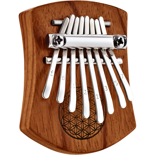 The Meinl Sonic Energy Mini Kalimba (sometimes called a Thumb Piano) is a soft-sounding melodic instrument that fills the space around you with ethereal tones as you pluck the notes. This kalimba has 8 steel keys (tines) on the scale of C Major. This instrument is easy to play and does not require any musical background. It's great for sound healing therapy, meditation, and yoga, also teachers can use them to corral a classroom. Of course, musicians can have their fu with them, too. Made with beautiful solid black walnut in a matte finish featuring an exquisite "Tree of Life" carving.