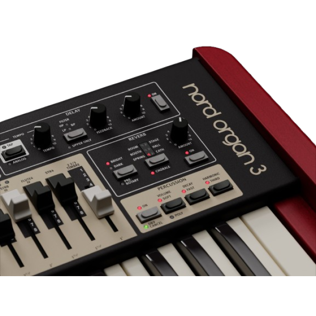 The acclaimed Nord Organ is back - reborn and reimagined as the all-new Nord Organ 3. The latest generation of our Organ series featuring massive improvements to sound, design and performance. With a greatly enhanced organ engine, added modulation effects and a new exceptional-sounding rotary speaker emulation, the Nord Organ 3 offers an unsurpassed level of detail and realism.